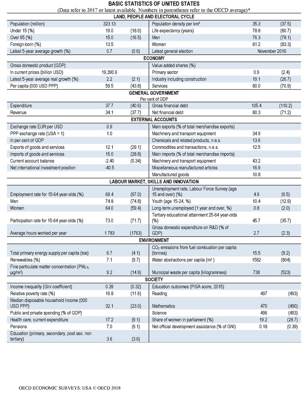 Economy Statistics of USA for 2018 by OECD Lobby global November 11, 2018 1 minute read Follow us on Social MediaxfacebookStatistics of USA for 2018 by OECD About the Author Lobby global Administrator View All Posts Facebook Twitter Messenger LinkedIn Print Viber WhatsApp Pinterest Post navigation Previous: Yemen: Major UN aid boost for ‘up to 14 million’ as country risks becoming a land of ‘living ghosts’Next: Statement by the NATO Spokesperson on the reported elections in eastern Ukraine Leave a Reply Cancel replyYou must be logged in to post a comment. Related Stories Economy News “Global Economic Growth Forecast: A Looming Slowdown Amid Geopolitical Uncertainty and Trade Frictions” Lobby global July 5, 2025 0 Economy News Western Asset Management Company Invests in World Bank to Raise Awareness for the Importance of Education Lobby global December 29, 2022 0 Economy News What’s Happening In The World’s Economies and Markets Lobby global September 17, 2022 0